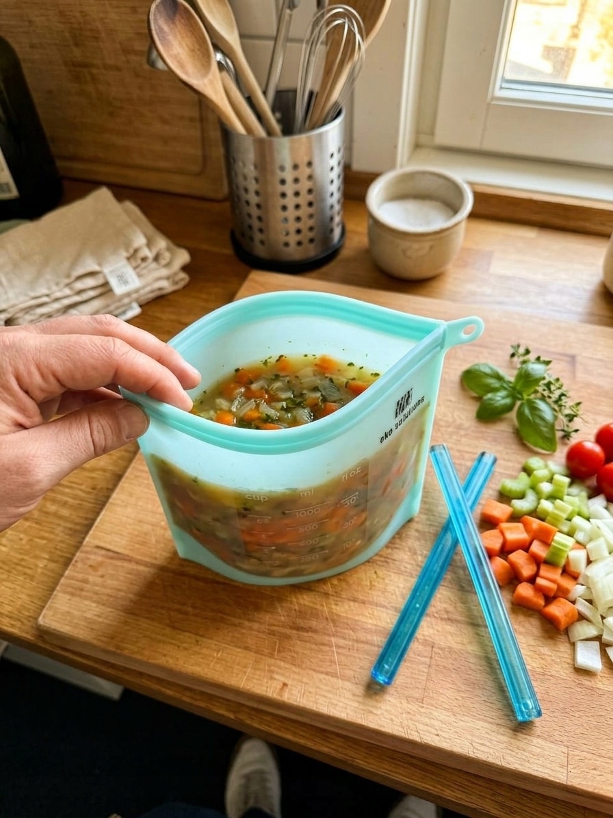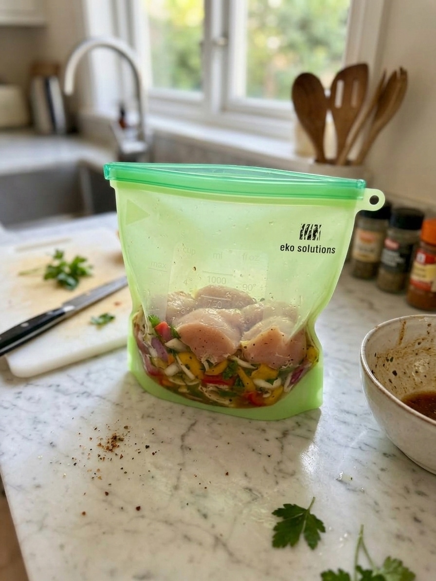 Silikonowe torby do przechowywania żywności to wielokrotnego użytku, ekologiczna alternatywa dla folii spożywczej i torebek strunowych. Wykonane z bezpiecznego dla zdrowia, wolnego od BPA i toksyn silikonu, są wytrzymałe, elastyczne i nie przeciekają. Idealne do przechowywania różnorodnych produktów spożywczych w lodówce czy zamrażarce. Nadają się również do gotowania metodą sous vide i odgrzewania w kąpieli wodnej.